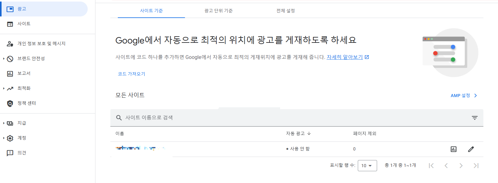 - 사이트별 설정에서 자동광고 → OFF